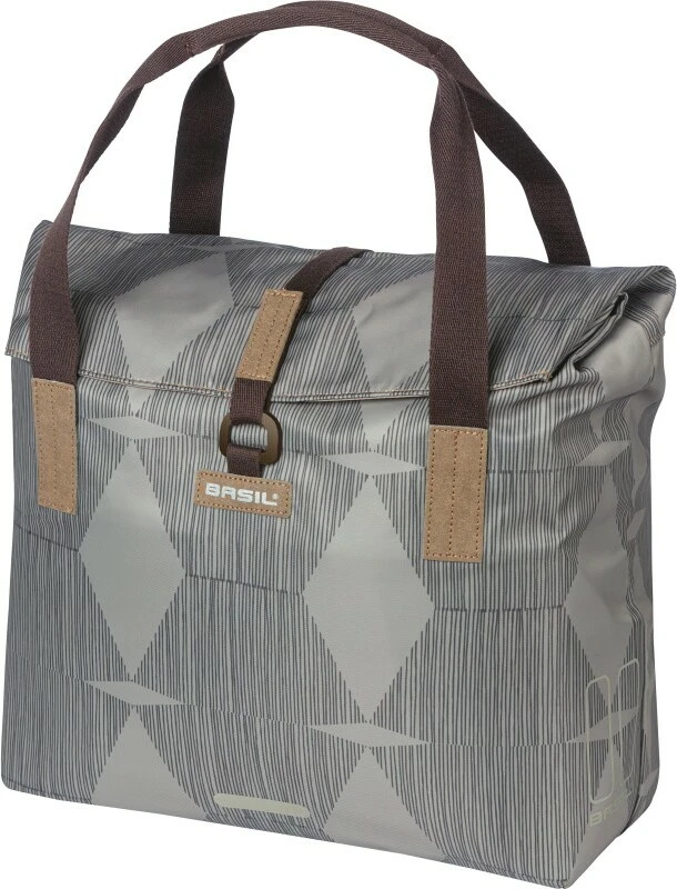 De Shoppertas van Basil is ideaal voor het bezoeken van winkels of voor het vervoeren van eigen spulletjes. Met zijn inhoud van 20 tot 26 Liter past er genoeg in en is dus perfect als fietstas te gebruiken. Het materiaal van de tas is gemaakt van waterafstotend en gerecycled PET. Daarnaast wordt de tas afgesloten via een vouwsluiting wat ook zorgt voor het drooghouden van alle spullen die in de tas zitten. Onder de tas zitten bodemdoppen, deze zorgen niet alleen dat de tas zelf beschermd wordt tegen de grond, maar ook de spullen in de tas die zo niet meteen op de grond terecht komen. Wanneer je klaar bent met fietsen kun je de tas eenvoudig van je drager af halen, want de tas zit met het Hook-On systeem vast waardoor je de tas snel en simpel van de drager haalt. Dan kun je de gepolsterde schouderbanden om je schouder slaan en verder te voet gaan. Kortom, deze ideale en duurzame tas kan gebruikt worden voor tijdens het fietsen en voor na het fietsen.
