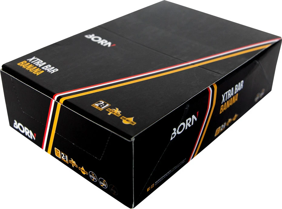 Alle trainingsdagen voldoende energie in huis, of om te delen met je fietsmaten. Met deze voordeelverpakking van 15 stuks zit jij niet snel meer zonder energierepen! Born Xtra Bar Banana heeft een heerlijke vulling van rijstcrisps, havervlokken, stukjes aardbei en banaan, omhuld met een yoghurtcoating. De Orange smaak bevat naast de rijstcrips en havervlokken ook sinaasappelstukjes en pure chocoladesnippers.Â